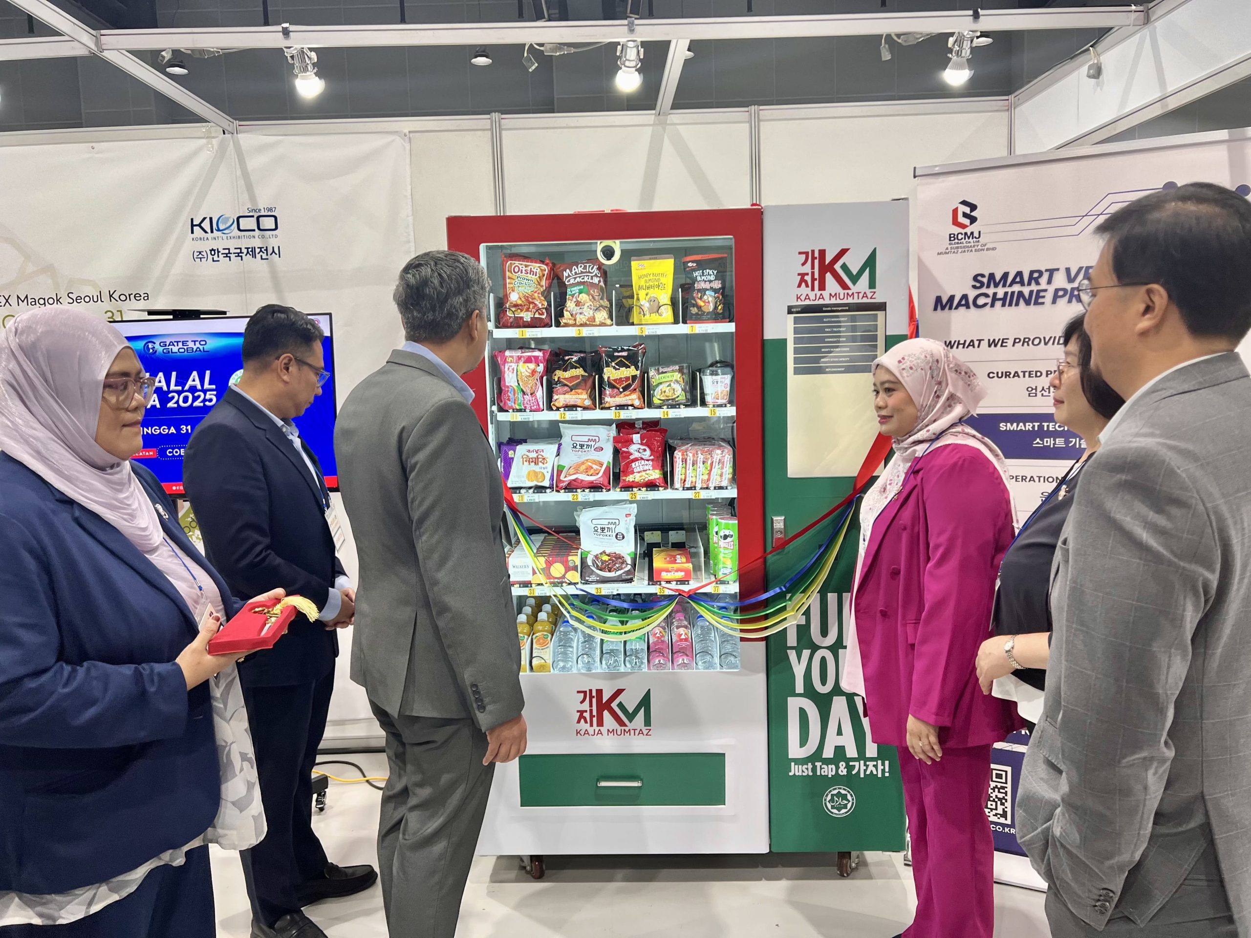 A proud moment as the Deputy Director General (Entrepreneurship) of MARA, Mr. Zahari bin Aziz, officiated the launch of the Kaja Mumtaz IoT Smart Halal Vending Machine, operated by BCMJ Global Co. Ltd., a subsidiary of Mumtaz Jaya Sdn. Bhd.