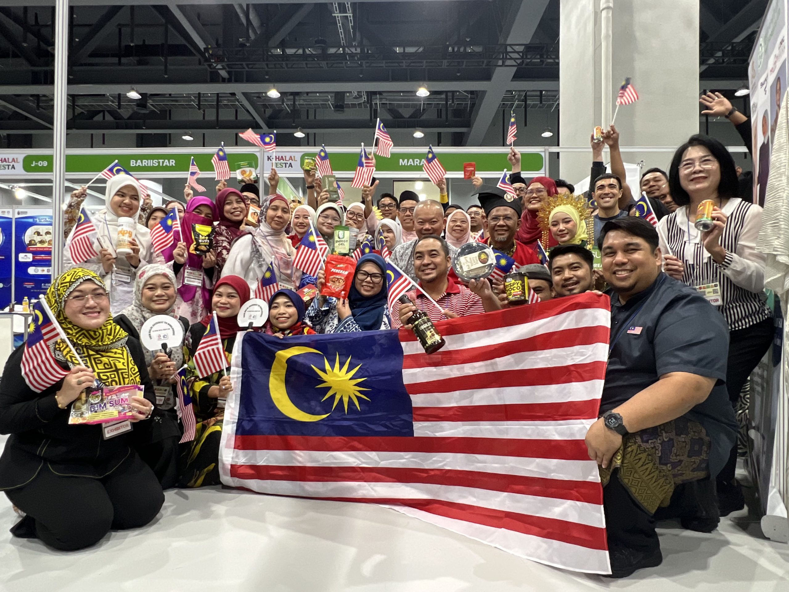 The delegation entrepreneurs under MARA gathered for a cheerful group photo after a successful day of promoting Malaysia’s halal industry abroad.